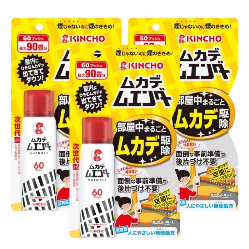 金鳥 ムカデムエンダー 60プッシュ×3本 ムカデ駆除剤 ムカデワンプッシュ ムカデスプレー クモ タカラダニ キンチョー