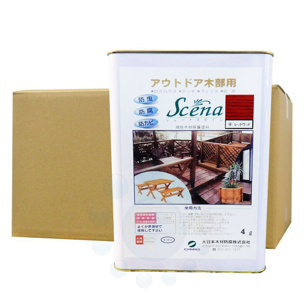 シェーナステイン レッドウッド 4L×4缶 木部用 防腐 防蟻 防カビ 木材 シロアリ予防 駆除 害虫 木材 保護 塗料
