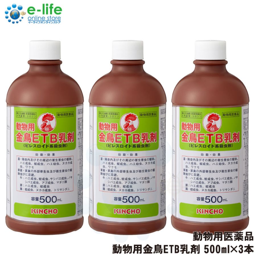 動物用 金鳥ETB乳剤 500ml×3本 【動物用医薬品】 ピレスロイド系殺虫剤 ハエ 蚊 ヌカカ ワクモ マダニ サシバエ トリ...