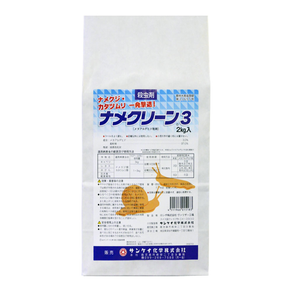 ナメクリーン3 2kg 農薬 ナメクジ カタツムリ 駆除 誘引 ベイト剤 メタアルデヒド粒剤 サンケイ化学