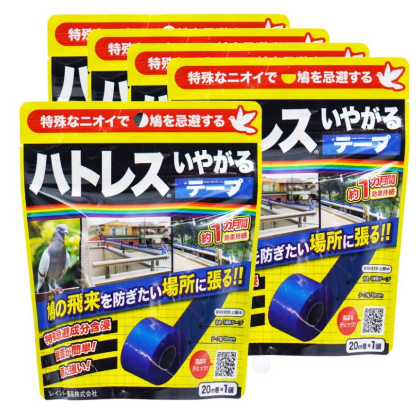 ハトレスいやがるテープ 20m巻×1個入×5セット 鳩 被害 嫌がる 忌避剤 設置 簡単 テープ ベランダ 飛来 防止 レインボー...