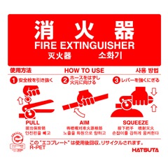 地球に優しいエコマーク標識♪消火器使用法板 エコプレート(点字付き・4カ国語対応) HECO-P