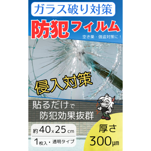 ガラス破り対策 防犯フィルム(1枚入り) 40×25 300μm