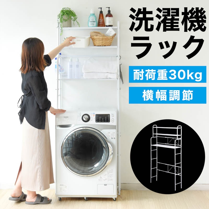 揺れない ランドリーラック 3段 幅伸縮 幅67-98cm調整可 洗濯機ラック 洗濯機上ラック 洗濯機上収納 洗濯機 洗面所 収納...