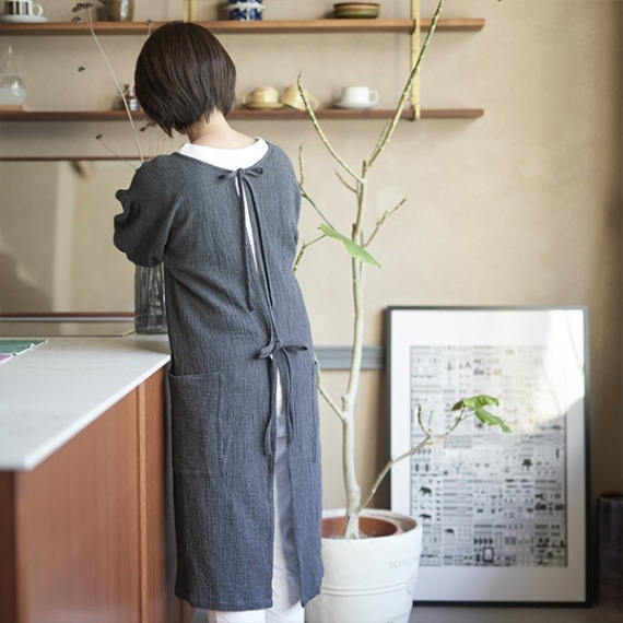 SUNNY LOCATION (サニーロケーション) エプロンコート ダブルガーゼ ライトグレー/チャコール/ネイビー キッチン/...