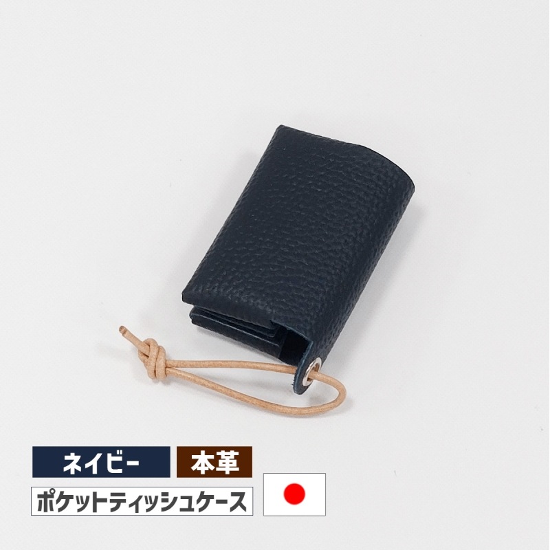[ODMDG16-NV-SV] ポケットティッシュケース カバー ティッシュポーチ ネイビー/金具シルバー 本革 日本製 DG-1...
