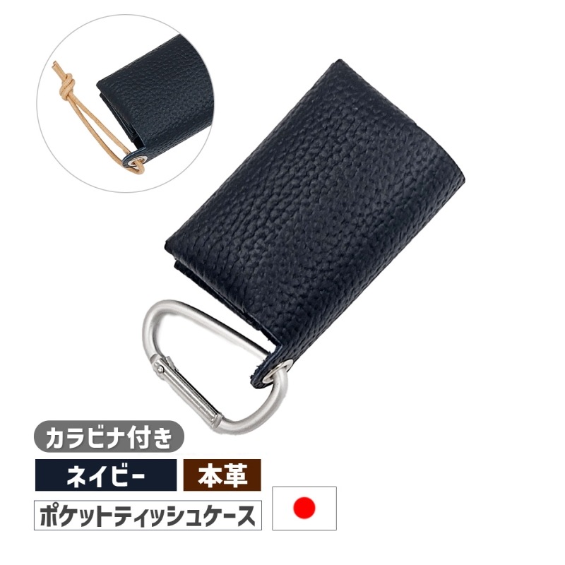 [ODMDG10-NV-SV] カラビナ付きポケットティッシュケース DG-10 本革 日本製 ネイビー/金具シルバー
