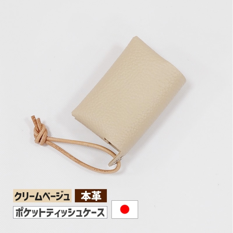 [ODMDG16-CB-SV] ポケットティッシュケース カバー ティッシュポーチ クリームベージュ/金具シルバー 本革 日本製 ...