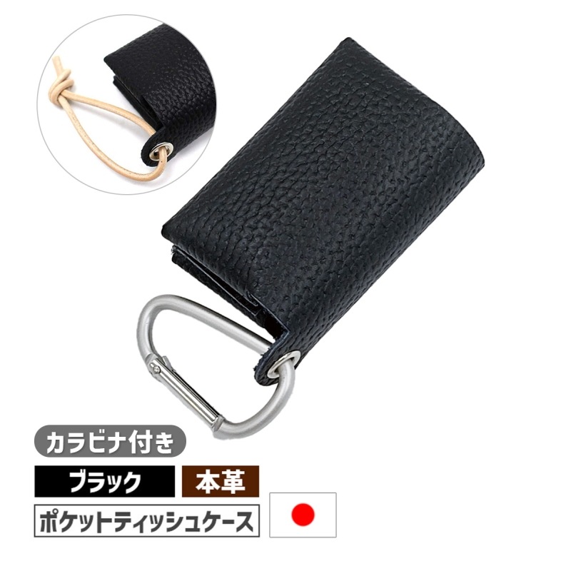 [ODMDG10-BK-SV] カラビナ付きポケットティッシュケース DG-10 本革 日本製 ブラック/金具シルバー