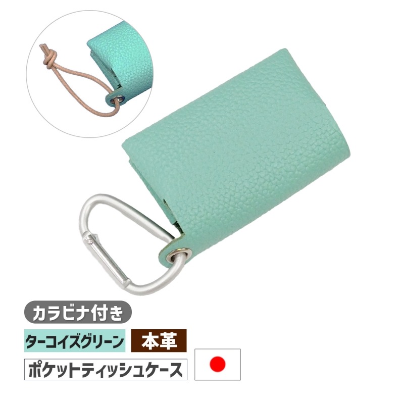 [ODMDG10-TG-SV] カラビナ付きポケットティッシュケース DG-10 本革 日本製 ターコイズグリーン/金具シルバー