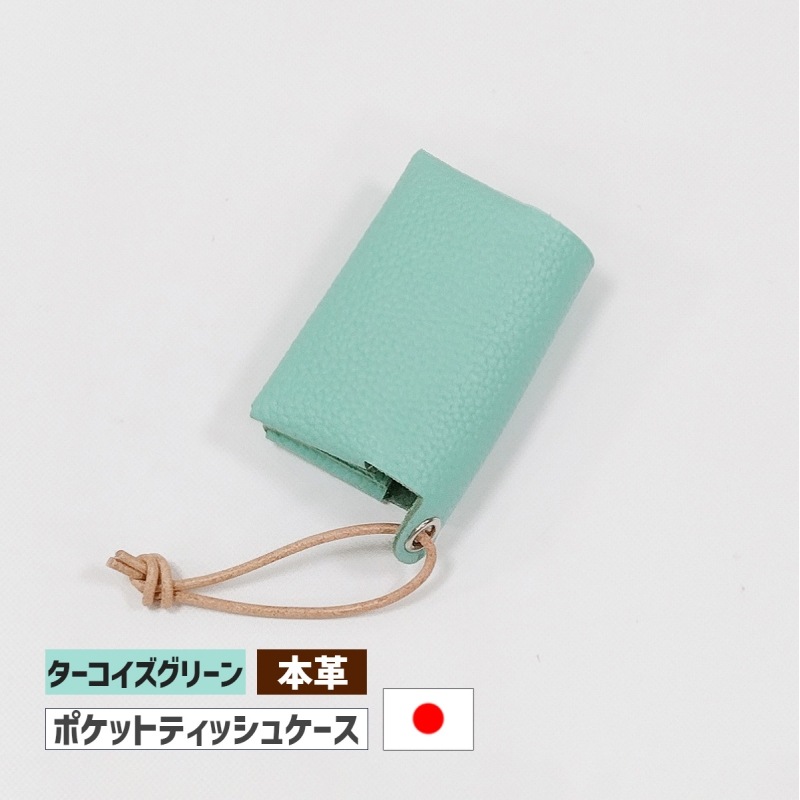 [ODMDG16-TG-SV] ポケットティッシュケース カバー ティッシュポーチ ターコイズグリーン/金具シルバー 本革 日本製...