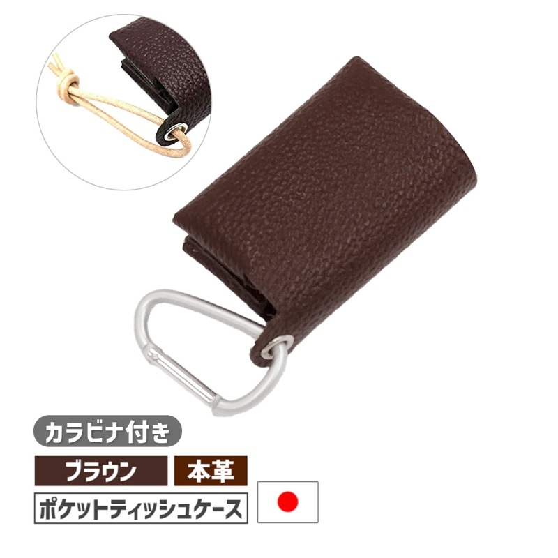 [ODMDG10-BR-SV] カラビナ付きポケットティッシュケース DG-10 本革 日本製 ブラウン/金具シルバー