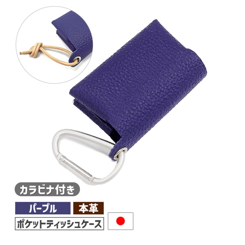 [ODMDG10-PL-SV] カラビナ付きポケットティッシュケース DG-10 本革 日本製 パープル/金具シルバー