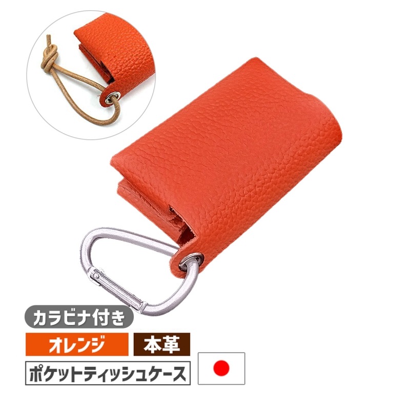 [ODMDG10-OR-SV] カラビナ付きポケットティッシュケース DG-10 本革 日本製 オレンジ/金具シルバー