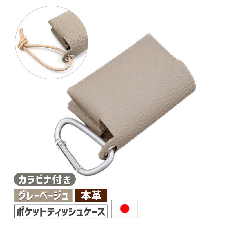 [ODMDG10-GB-SV] カラビナ付きポケットティッシュケース DG-10 本革 日本製 グレーベージュ/金具シルバー