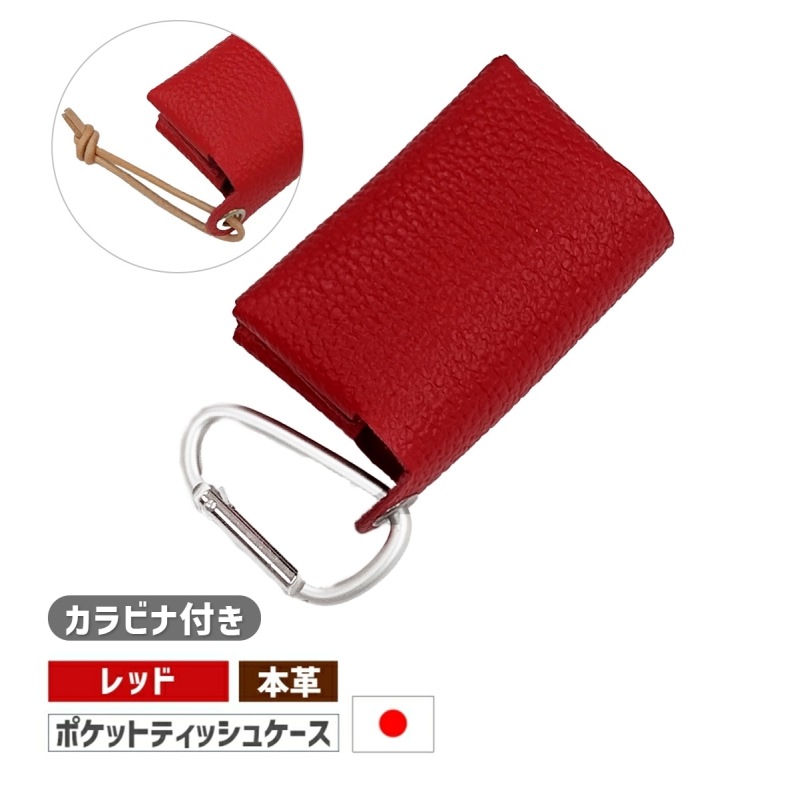 [ODMDG10-RD-SV] カラビナ付きポケットティッシュケース DG-10 本革 日本製 レッド/金具シルバー