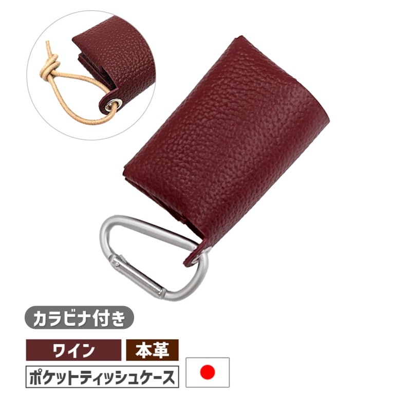 [ODMDG10-WI-SV] カラビナ付きポケットティッシュケース DG-10 本革 日本製 ワイン/金具シルバー