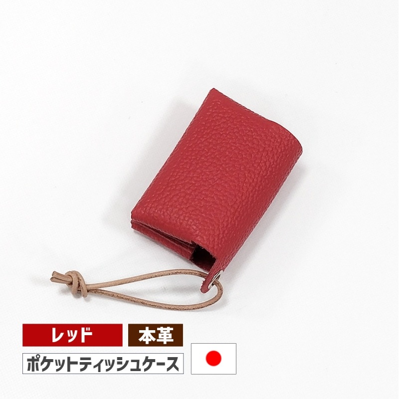 [ODMDG16-RD-SV] ポケットティッシュケース カバー ティッシュポーチ レッド/金具シルバー 本革 日本製 DG-16...