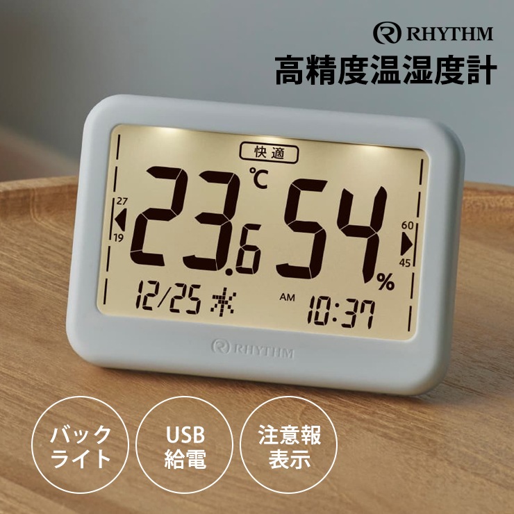 [9YYA46RH08] 環境目安表示付き高精度温湿度計 COMFOMETER(コンフォメーター) バックライト常時点灯 ライトグ...