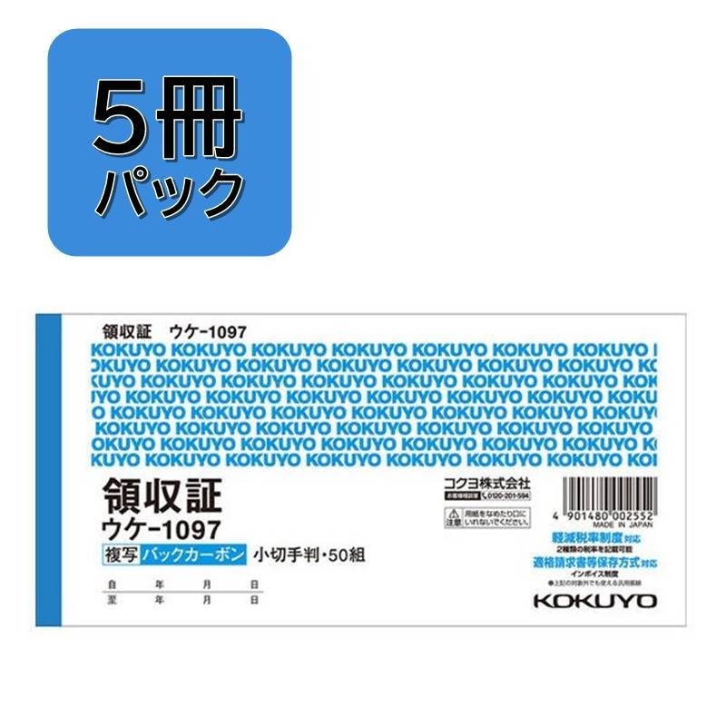 【5冊パック】コクヨ バックカーボン複写簿 領収証 小切手判 5冊組 ウケ-1097X5
