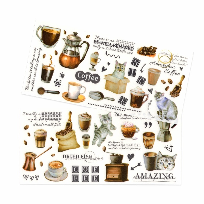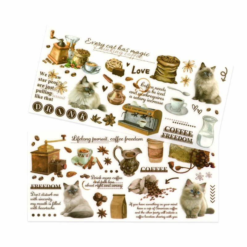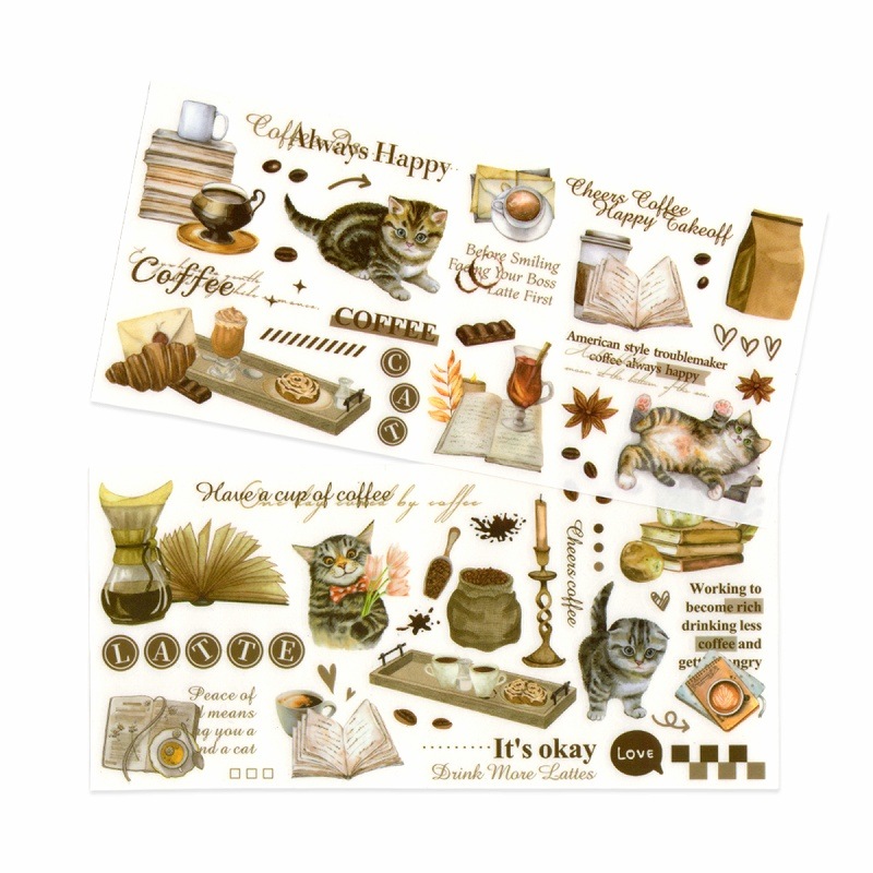 フレークシール (転写シール) シート スクラップ素材 猫カフェシリーズ (手作りコーヒー) PVC素材