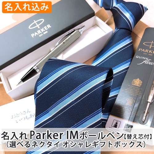【名入れ込み】 パーカー IM ボールペン と ネクタイ オシャレギフトボックス 【ブラッシュドメタルCT】 (替え芯付) プレゼ...