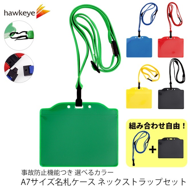 A7サイズ名札ケース ネックストラップセット 選べるカラー 事故防止パーツ付き 1セット