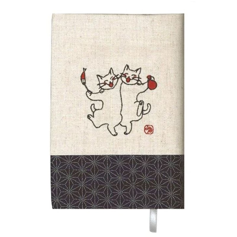 ブックカバー 和風・刺繍 酔っ払い猫 文庫サイズ 【残りわずか】