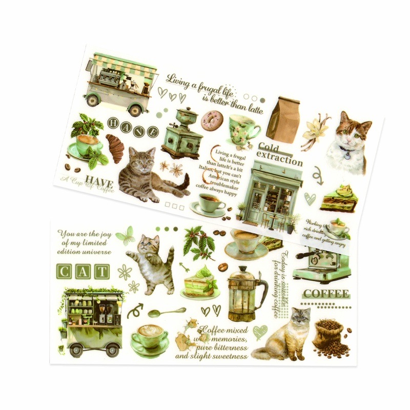 フレークシール (転写シール) シート スクラップ素材 猫カフェシリーズ (クリーミーラテ) PVC素材