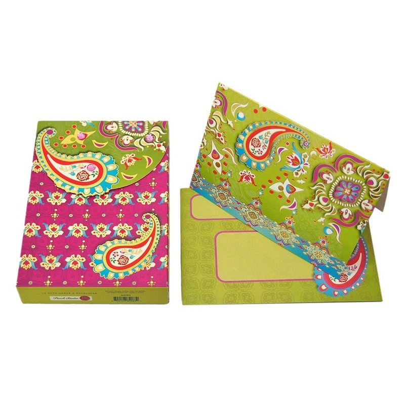 Punch Studio グリーティングカードセット ポーチ型ボックス (ペイズリー柄×黄緑)
