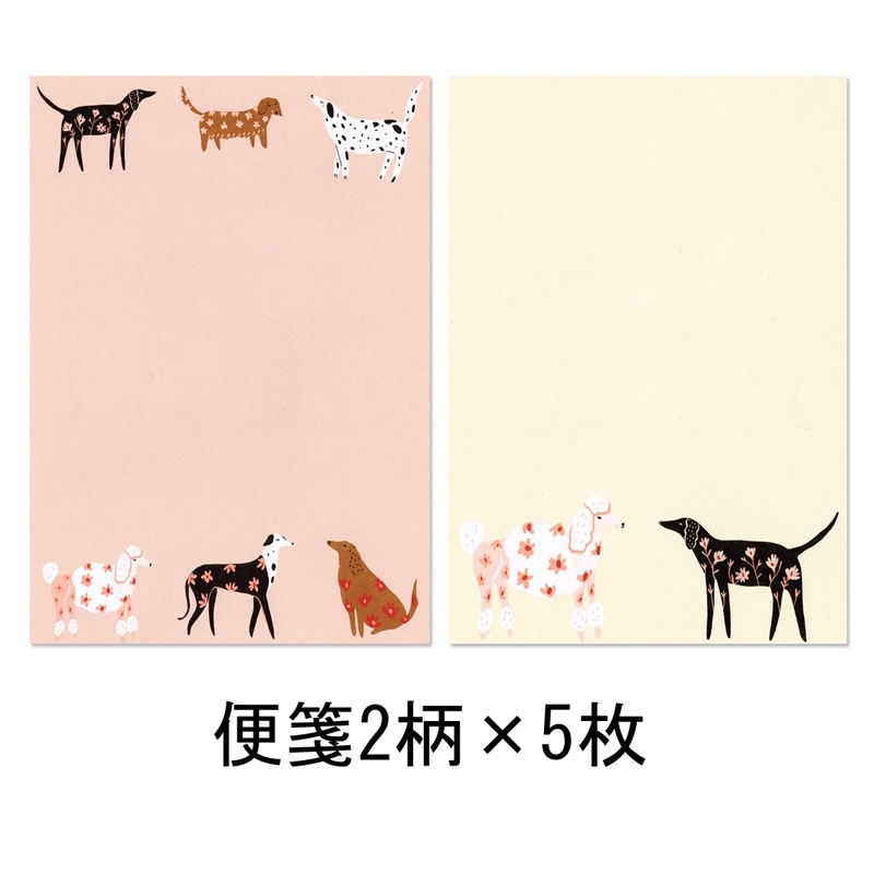 ロジャーラボード レターセット 便箋2柄×5枚 封筒10枚 シール2柄×1シート (花柄の犬)