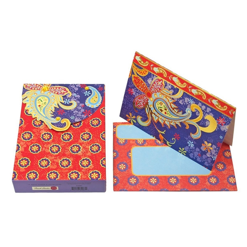 Punch Studio グリーティングカードセット ポーチ型ボックス (ペイズリー柄×ブルー)