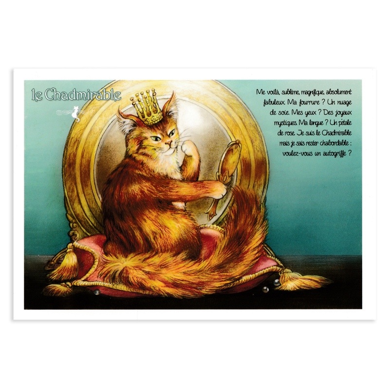 フランス製 ネコのポストカード (le Chadmirable) 手鏡を見つめる立派な猫