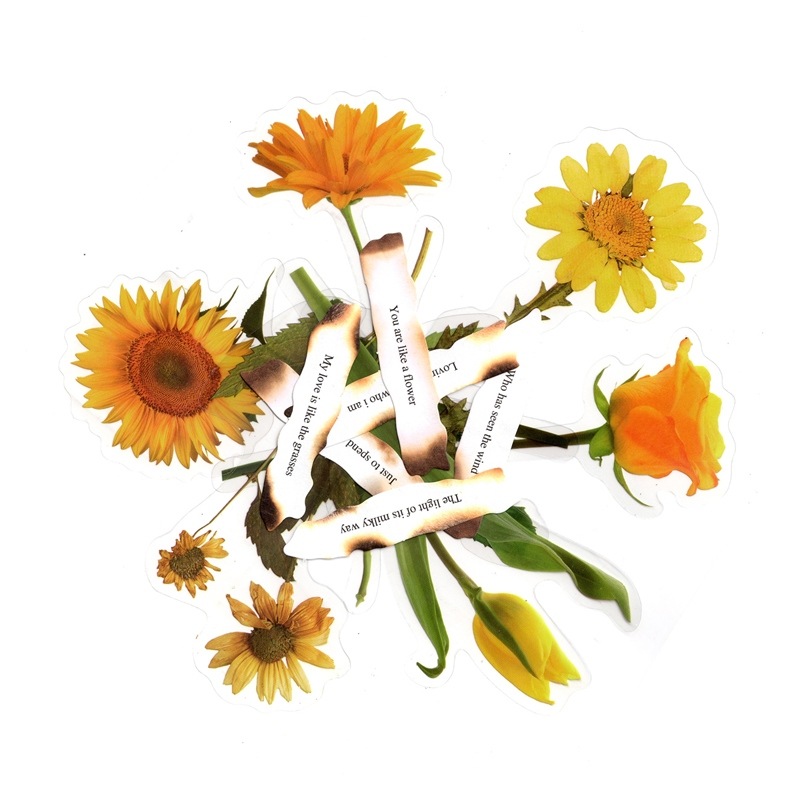 フレークシール セット スクラップ素材 フラワーポエトリーシリーズ (イエロー) PET+紙素材