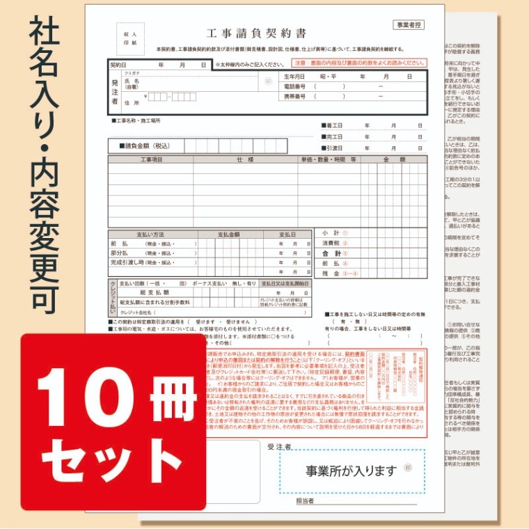 工事請負契約書 社名入り(10冊セット)