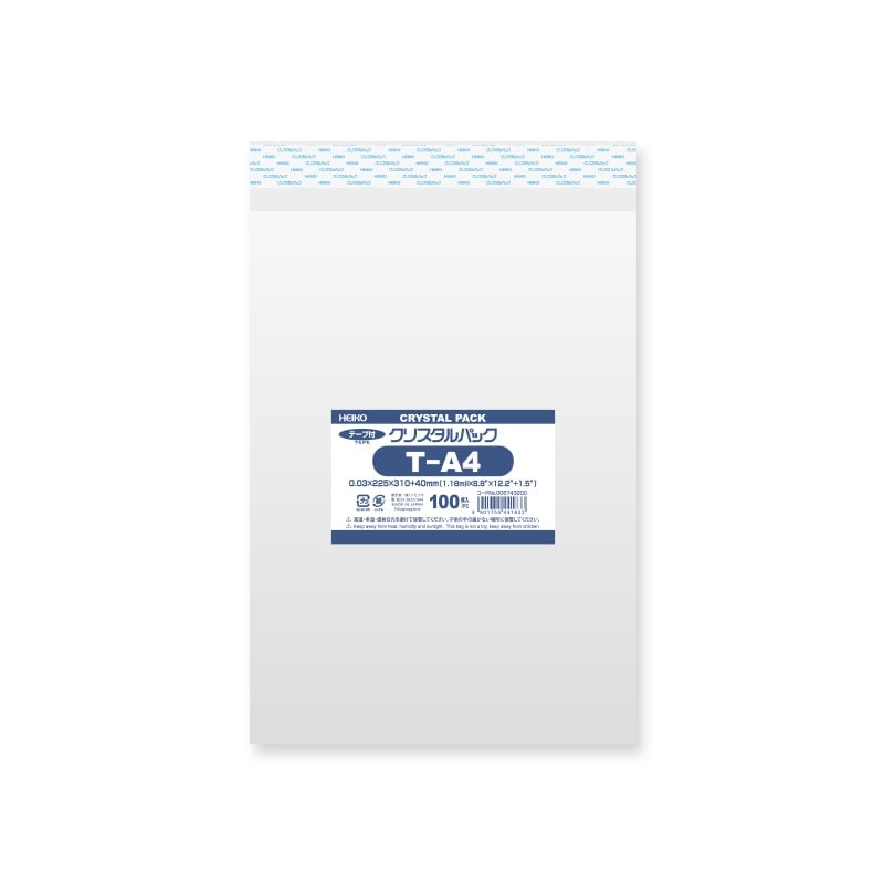 HEIKO OPP袋 クリスタルパック T-A4 (テープ付き) 100枚/袋 シモジマ