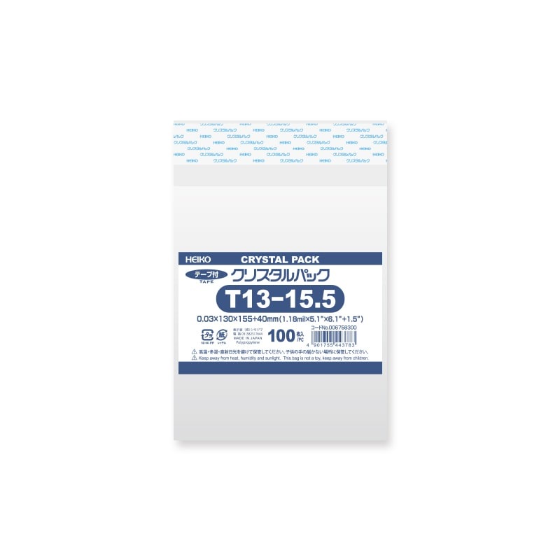 HEIKO OPP袋 クリスタルパック T13-15.5 (テープ付き) 100枚/袋 シモジマ