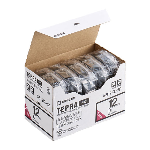[SS12KL-5P] テプラPROテープカートリッジ 12mm エコパック(5個入) 白ラベル 黒文字 ロング