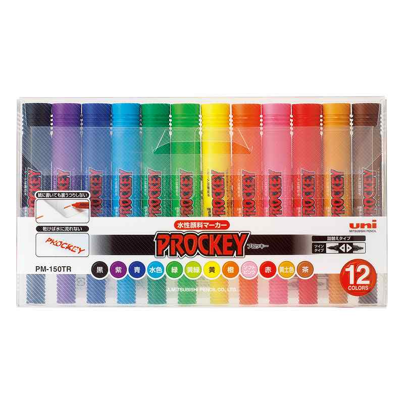 三菱鉛筆 水性マーカー プロッキー 12色 セット PM150TR12CN