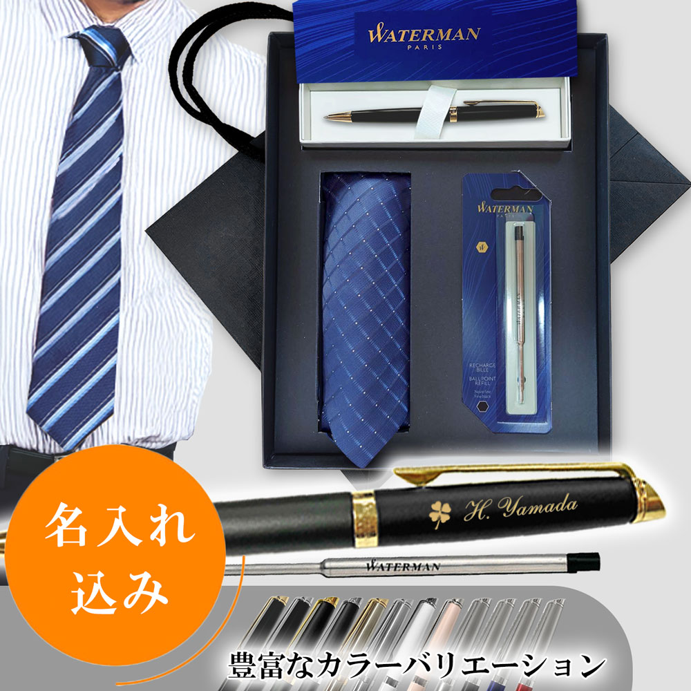 【名入れ込み】ひよこ堂 名入れボールペン 最強ネクタイセット 【 ボールペン 替え芯 ネクタイ 高級手提げ袋 】 ウォーターマン...