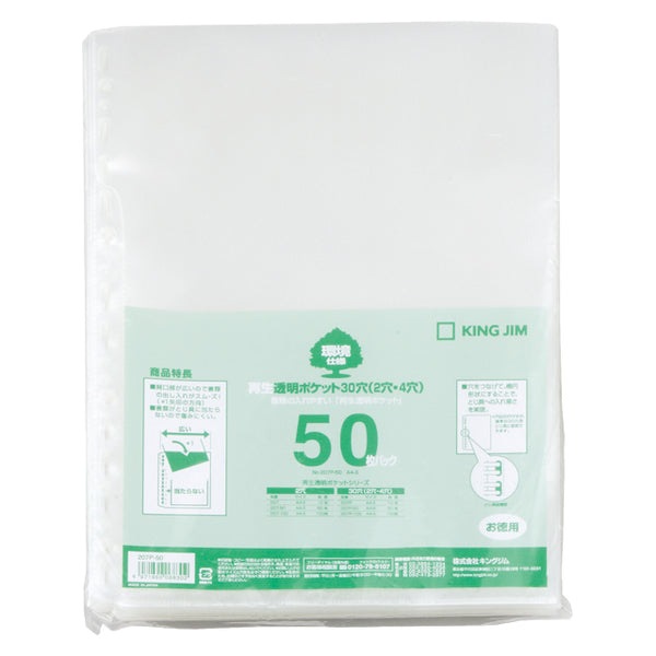 [207P-50] 再生透明ポケット30穴 A4タテ型 50枚P