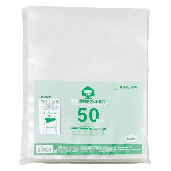 [207-50] 再生透明ポケット 2穴 A4タテ型 50枚P