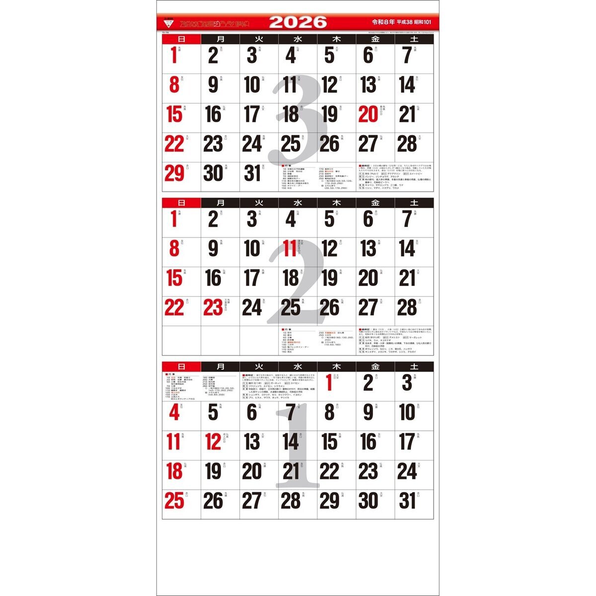 [TD-795-2026] 3ヶ月文字(15ヶ月)-下から順タイプ- 2026年