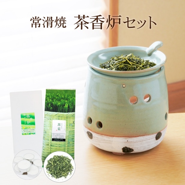 茶香炉セット 常滑焼 焜清窯 青磁釉 香炉&ローソク&茶香炉専用 茶葉セット