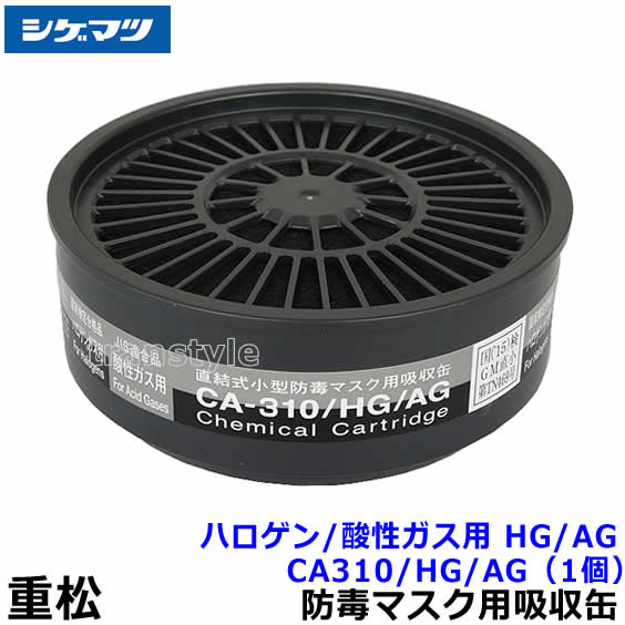 シゲマツ/重松 ハロゲン/酸性ガス用吸収缶 CA310/HG/AG(1個)【ガスマスク/作業/防毒マスク/工事】