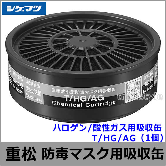 重松/シゲマツ ハロゲン/酸性ガス用吸収缶 T/HG/AG (1個) 【ガスマスク/防毒マスク/作業/有毒/粉じん】