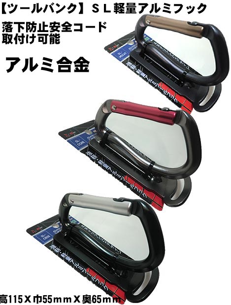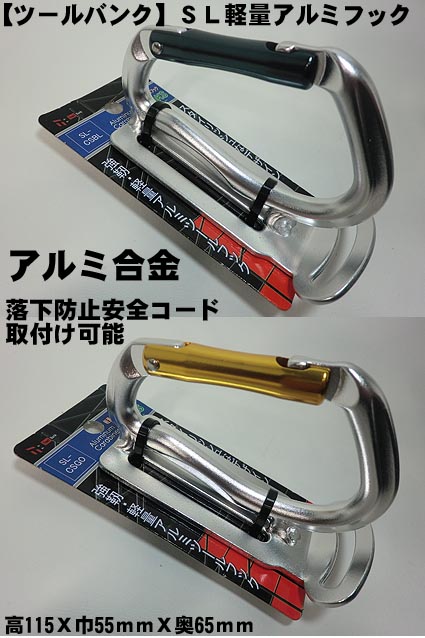 【ツールバンク】軽量アルミツールフックカラビナSL 落下防止コード穴付き 【寅壱・関東鳶職人向け工具】