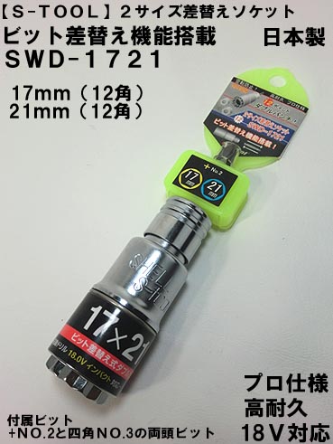 【S-TOOL】差替え ダブルソケット 12角 SWD-1721 17X21mm 【インパクト用ダブルソケット】【エスツール】...