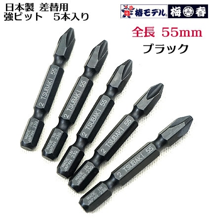 【椿モデル】数量限定 ブラック 差替用 強ビット 5本入り 55mm 日本製 【ゆうパケット配送可】【LBB-55-5p】【寅壱・...