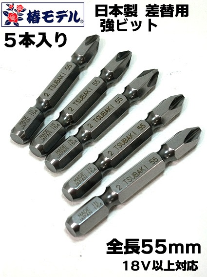 【椿モデル】日本製 差替用 強ビット 5本入り【メール便配送可】 【TKB-55-5P】 【寅壱・関東鳶職人向け工具】